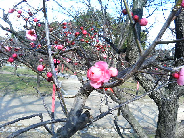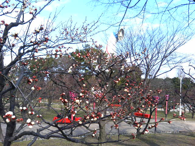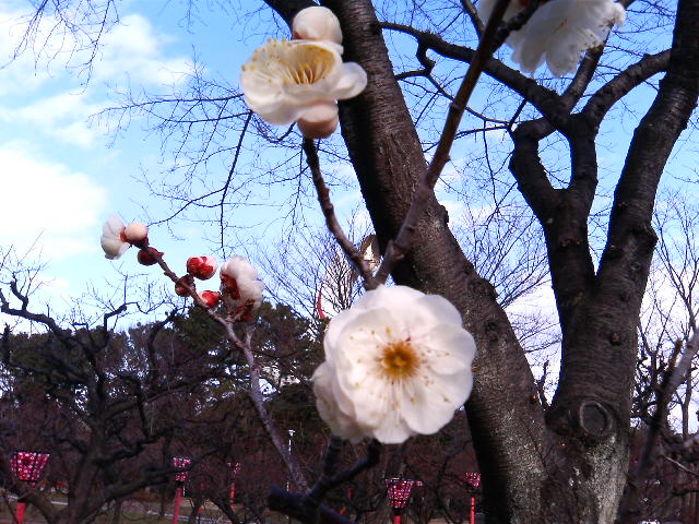 公園内では、季節の折々で、さまざまな植物が私たちの目を楽しませてくれます。ちょうどこの時季は、自然文化園で『梅まつり』が開催されていました。