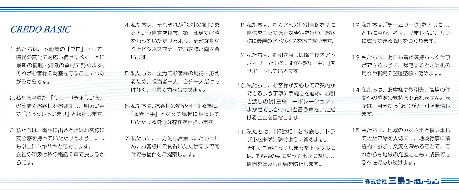 裏面の「CREDO BASIC」は、日頃私たちが心掛けて守っていこうというルールが掲げられています。