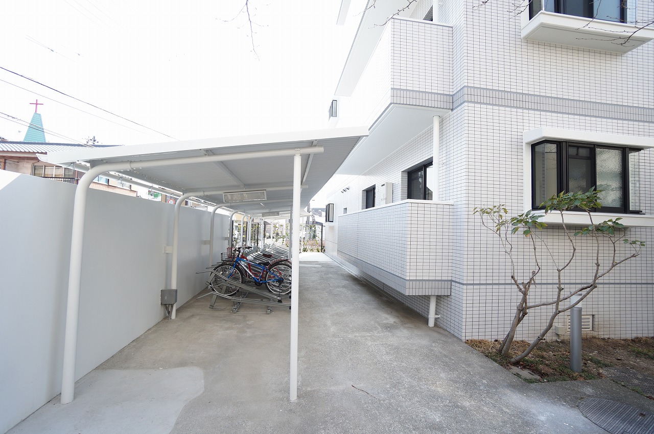 屋根つきの駐輪場、使用料は自転車無料・原付(1,080円/月)