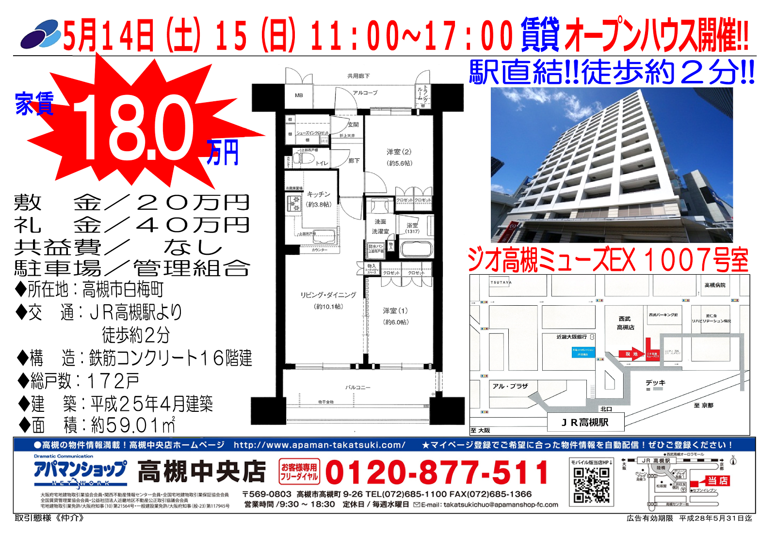 5/14(土)~15(日) ジオ高槻ミューズEX 賃貸オープンハウス実施します!