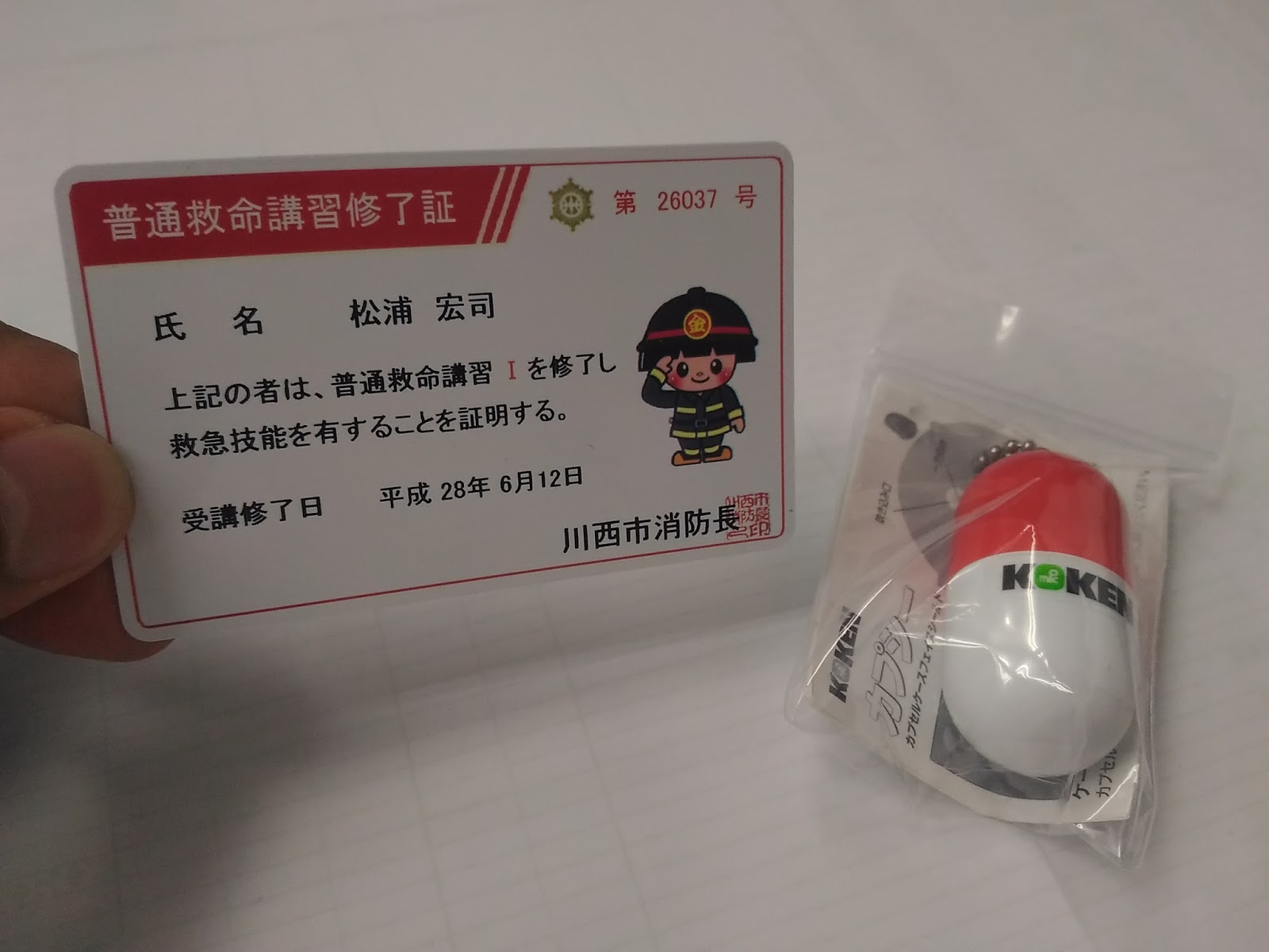 昨日、兵庫県川西市消防本部による 普通救命講習Ⅰ に夫婦で参加させていただきました。