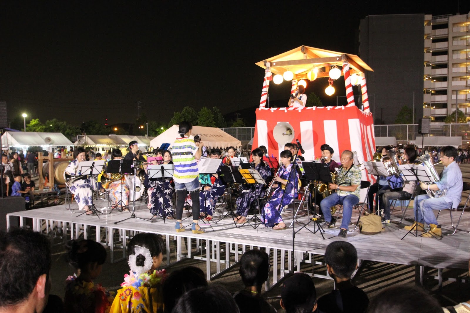櫓の前では「島本シンフォニックバンド」さんがライブを行っており、妖怪ウォッチコレクション・君の瞳に恋してる・ソーラン・ファンクと有名な曲を演奏されて大いに盛り上がっておりました!